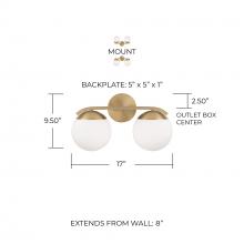 Crafted with circular forms and soft white glass, the Oliver 2-Light Vanity brings effortless glamour to any powder room. The curved arms and accents evoke elegant style, while the Matte Brass finish creates a sophisticated shimmer.