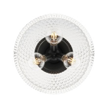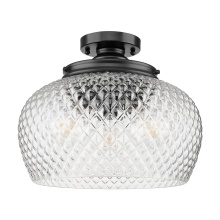 Bring farmhouse elegance into your home with the Golden Lighting Adeline 3-light Semi-Flush Mount. Featuring a glass shade and a Matte Black frame, it creates a welcoming atmosphere. The clear glass shade allows for brilliant, unobstructed light, perfectly showcasing the warmth and character of your bulb. Its polished finish enhances the overall aesthetic while providing a vintage-inspired touch. The Matte Black finish is timeless and endlessly versatile, offering a sophisticated look that complements various decor styles from minimalist to industrial. Ideal for spaces with mid-height ceilings, this fixture is damp location rated, making it suitable for covered areas with occasional moisture. Requires 3 E26 Medium base bulbs (not included) with a maximum wattage of 60 per bulb. Overall Dimensions: 14"W x 11.25"H x 14"D. Illuminate your home with a blend of modernity and charm, ensuring both style and practicality.