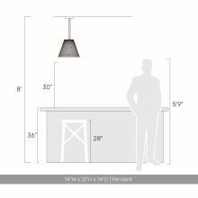 Bring modern elegance into your home with the Golden Lighting Clarus 14in Integrated LED Pendant. Featuring a cement shade and a matte black frame, it creates a welcoming atmosphere. The gray cement shade, crafted from genuine cast concrete, showcases a raw, architectural aesthetic with a fine granular texture, enhancing its minimalist appeal. The matte black finish is smooth to the touch and complements any décor. Suitable for covered and semi-enclosed spaces, this pendant is perfect for kitchens, dining rooms, and entryways. It is sloped-ceiling compatible and adjustable in height (min: 13.75" - max: 133.75"). Overall dimensions are 14"W x 12"H x 14"D, with integrated LED technology providing 880 lumens and the option of three color temperatures (3000K, 4000K, 5000K)._Close your home with quality and style with this stunning pendant fixture._