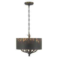 Bring Nature-Inspired elegance into your home with the Wry Lighting Arboreal 4-light Pendant in Antique Black Iron. Featuring a metal shade and a striking Antique Black Iron frame, it creates a welcoming atmosphere. This pendant's eye-catching metal shade, finished in Antique Black Iron, captures the raw, authentic charm of a bygone era. The deeply textured finish features a matte charcoal-black top coat applied over an antiqued gold base, with heavy distressing that authentically simulates weathered iron. The Antique Black Iron finish tells a story of time and endurance. Perfect for industrial and rustic settings, it adds a statement of age and handcrafted character to any space. Versatile for a variety of rooms, this pendant is ideal for kitchens, dining rooms, and bedrooms, and is rated for dry locations, perfect for indoor spaces not subject to moisture. It features a convertible design with adjustable height for sloped or flat ceilings, adjustable from a minimum of 17.875" to a maximum of 91.125". With overall dimensions of 15"W x 14.13"H x 15"D, it requires 4 E12 candelabra base bulbs (not included) with a maximum wattage of 60 per bulb. Elevate your space with the quality and lifestyle appeal of the Wry Lighting Arboreal pendant—where beauty meets craftsmanship.
