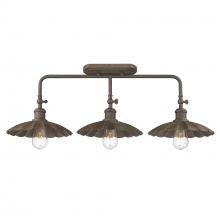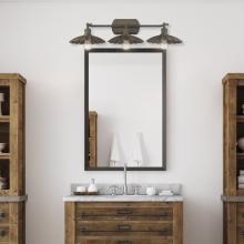 Upgrade your bathroom with the Wry Lighting Clemence 3-light Vanity in Dark Rust. This fixture seamlessly integrates farmhouse aesthetics with modern functionality, featuring three metal shades and a dark rust frame. The metal shades offer a chic design while providing warm, inviting light that enhances your grooming experiences. Its texture and deep coloration, complemented by coppery-orange flecks, create a rustic ambiance that transforms any space. This vanity light is damp location rated, making it suitable for areas prone to moisture, like bathrooms or covered porches. The adjustable directional heads provide flexibility to shine light exactly where you need it, enhancing the usability of your space. Overall Dimensions: 30.88"W x 7.13"H x 10.13"D. Requires 3 E26 Medium base bulbs (not included, max 100 watt). This product showcases quality craftsmanship along with a unique aesthetic that elevates your every day.