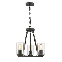 Bring modern industrial elegance into your home with the Wry Lighting Monroe 3-light Chandelier. Featuring a glass shade and a matte black frame, it creates a welcoming atmosphere. The clear glass shade offers brilliant, unobstructed light, showcasing the beauty of the bulbs while adding a clean and timeless appeal. This polished glass enhances the chic design, perfect for any modern space. The matte black finish is both timeless and versatile, providing a smooth and non-reflective look that complements a wide range of decor styles. Ideal for indoor spaces not subject to moisture, this chandelier is perfect for dining rooms, living areas, and bedrooms. It features a convertible design with adjustable height, allowing it to be installed as a semi-flush mount or pendant, accommodating both sloped and flat ceilings with a hanging height range from 15.25" to 87.25". Overall dimensions are 16"W x 14.5"H x 16"D, and it requires three E26 medium base bulbs (not included) with a maximum wattage of 60 per bulb. Elevate your space with quality craftsmanship and a refined aesthetic that makes a stunning statement in any room.