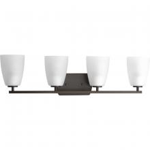 Ideal for a bathroom;Perfect for modern and transitional style settings;Handsome antique bronze finish;Elegant etched glass shades;Mount the light fixture facing up or down;Use 4 medium base bulbs that are sold separately (100 W max - LED/CFL/incandescent)