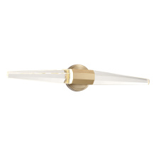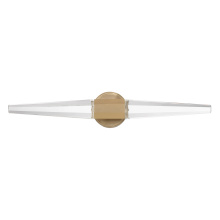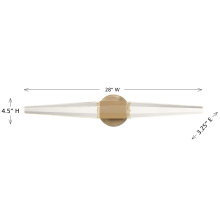 Get right to the point of style with the Savoy House Beaumont LED wall sconce. Two pieces of faceted, pointed K9 crystal burst forth from an understated base, which is finished in super chic Noble Brass. This edgy style is a perfect way to illuminate a bath vanity, piece of art, hallway, living room, bedside table or any other space you can imagine! Beaumont is 5.25" in height, 28" in width and extends 4.25" from the wall. It uses integrated LED light sources.