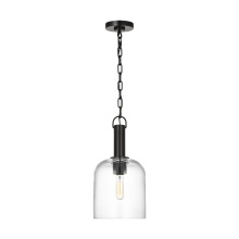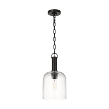 - Crafted with Steel in a Aged Iron finish with clear glass shade