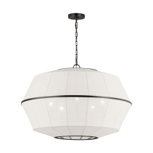 - Crafted with Steel in a Aged Iron finish with white linen shades