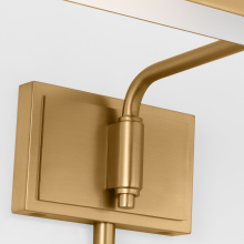 Inspired by a ship's outer hull, the Hull series by Chapman & Myers has a unique shade of these picture lights made from a single piece of metal bent into a cylindrical form. These picture lights have an open-ended design directing light both down and to the sides. A subtle horse saddle design and double barrel back-plate detail that pivots in the direction needed. Available in three sizes and two finish options.