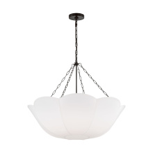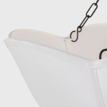 - The interplay between the white linen shade and metal chain adds texture and visual interest